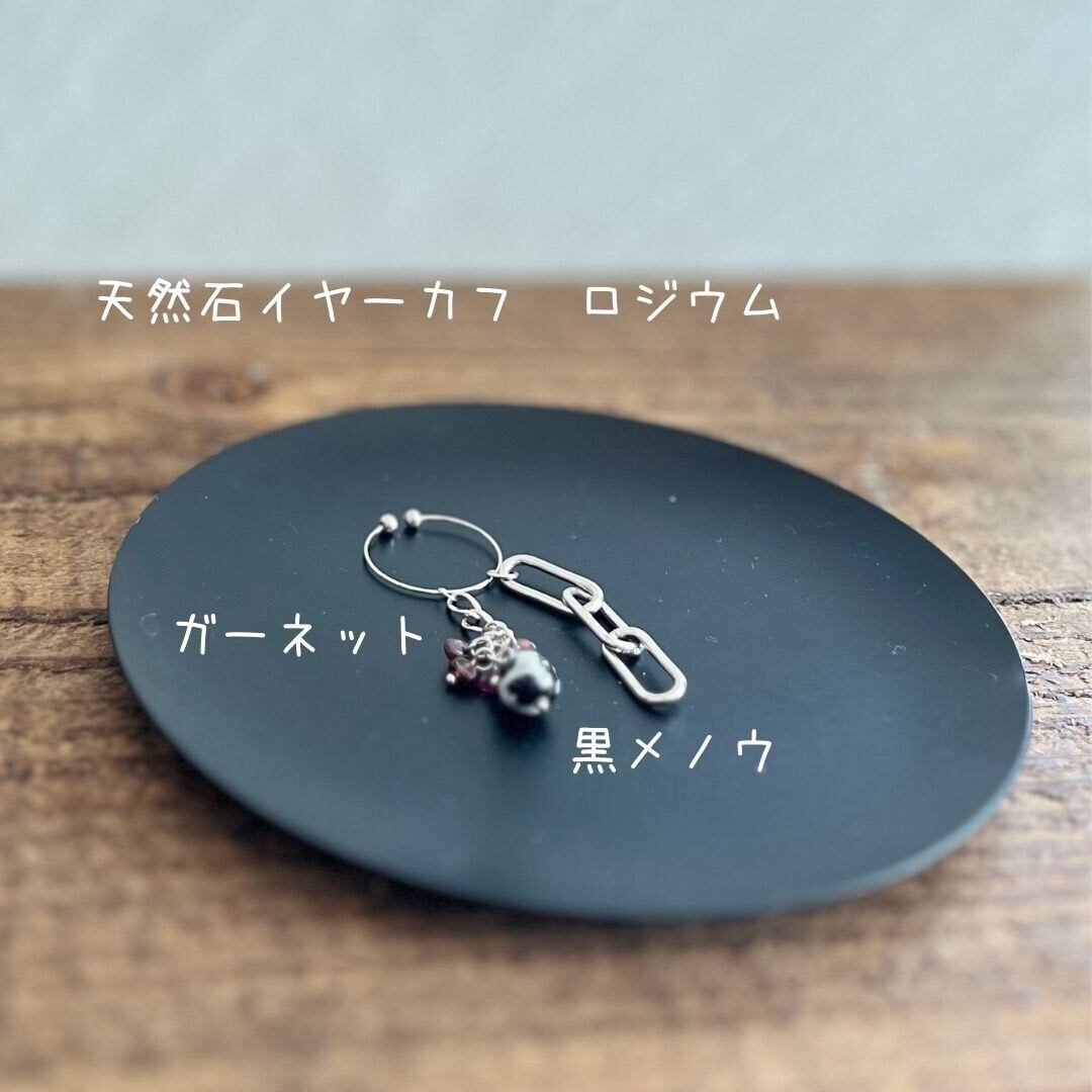 大人っぽい雰囲気を演出する天然石イヤーカフです。ガーネットと黒メノウの組み合わせが、シンプルでありながらも個性的な印象を与えます。手首や指先のアクセサリーだけでなく、耳元にもこだわりたい方にぴったりの一品です。