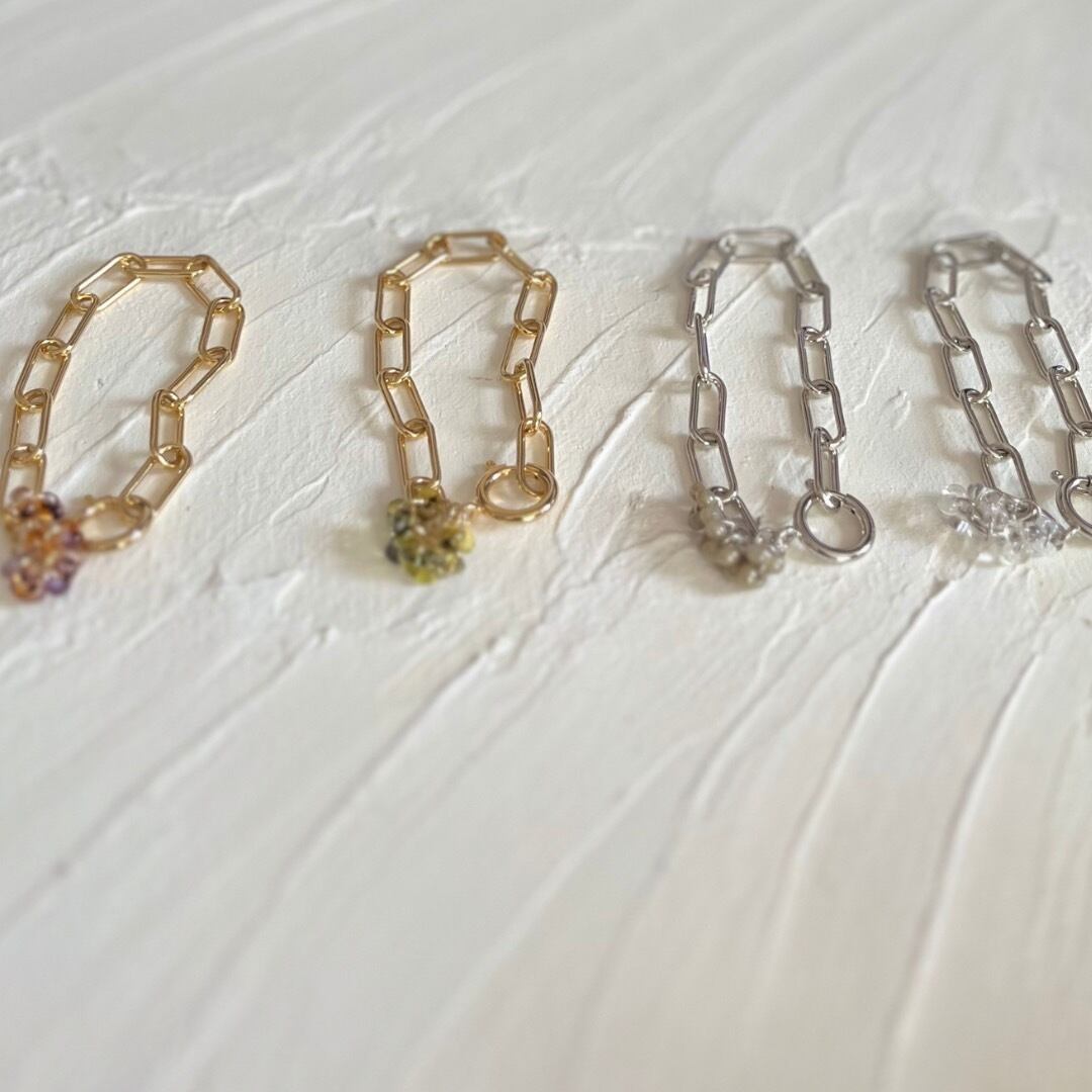 大人気のブレスレットが新登場!大きめなアズキチェーンと小粒のファルファーレビーズが織り成す、上品で華やかな仕上がりが特徴です。手首を引き立てる存在感抜群のアクセサリーで、どんなコーディネートにもぴったりマッチします。